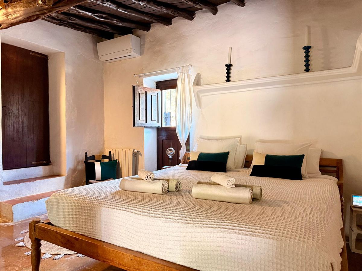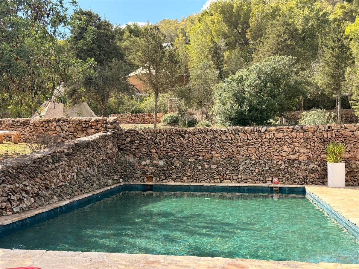 The grounds feature natural terraces with centuries-old olive trees, Mediterranean pines, and other native plants. The entrance driveway is framed by a traditional stone wall, enhancing the finca’s authentic character, ending on a spacious parking area.