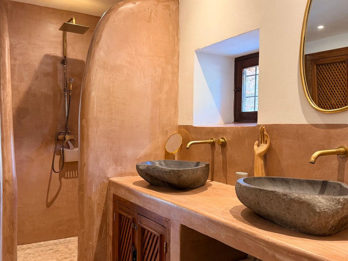 The property unfolds over two floors. The upper level hosts the master bedroom with an en-suite bathroom, opening onto a beautiful covered terrace. At the opposite end of this terrace is an additional room that can serve as an office or a private lounge, creating a serene retreat connected to the master suite.