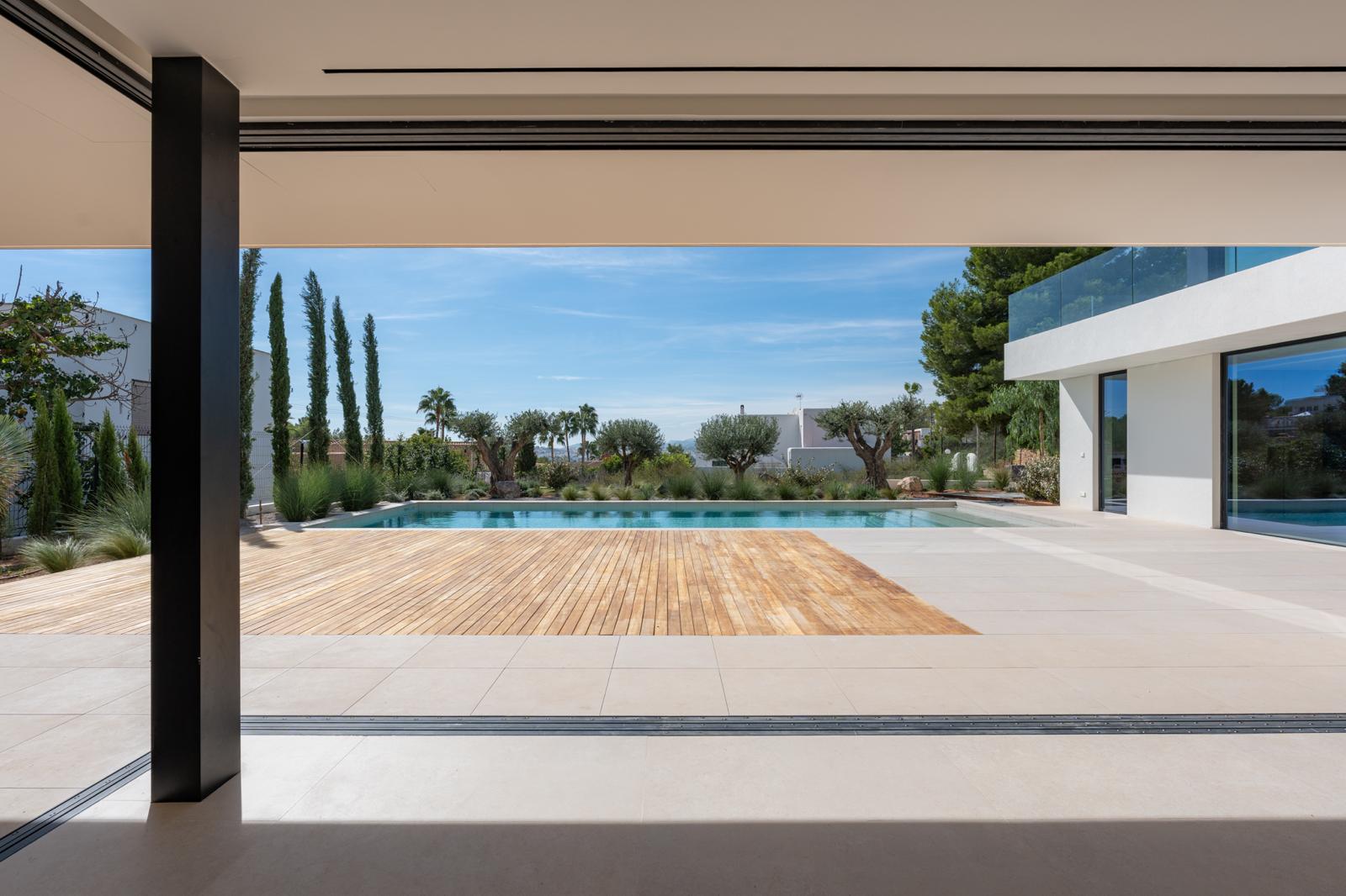 Outdoors, a 60 m² swimming pool with a retractable cover, sun terraces, and landscaped gardens create a private paradise for relaxation and entertainment. The property also includes a large underground garage for up to five cars and additional space for a gym, cinema, or guest suite. Villa La Brise is move-in ready — a rare opportunity to own a brand-new home in one of Ibiza’s most exclusive locations.